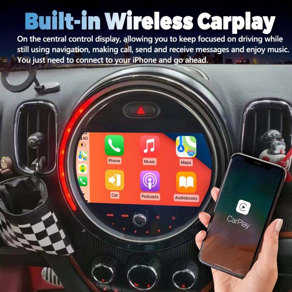 Pour Mini Cooper Countryman F60 2017 2018 2019 Lecteur multimédia vidéo Stéréo Android 12 Écran GPS CarPlay sans fil Autoradio