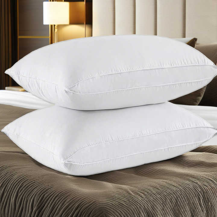 Oreillers de sommeil modernes en duvet de plumes d'oie, housse 100% coton, respirants et ergonomiques, lot de 2, taille King