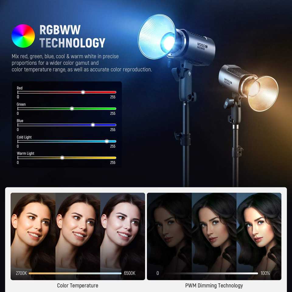 Pour NEEWER 150W Mini Lampe Vidéo RGB COB MS150C LED RGBWW Contrôle 2.4G/APP Éclairage Continu pour Photographes de Studio