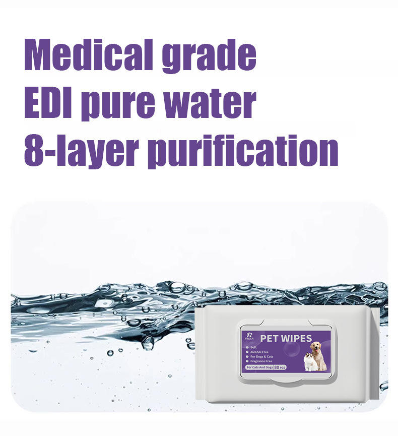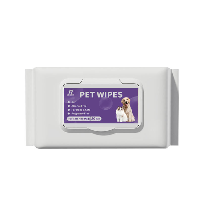Nouvelles lingettes nettoyantes pour animaux de compagnie sans alcool, à usage unique, vente chaude pour le commerce extérieur, 80 lingettes pour chats et chiens, nettoyage sans rinçage, en plastique souple
