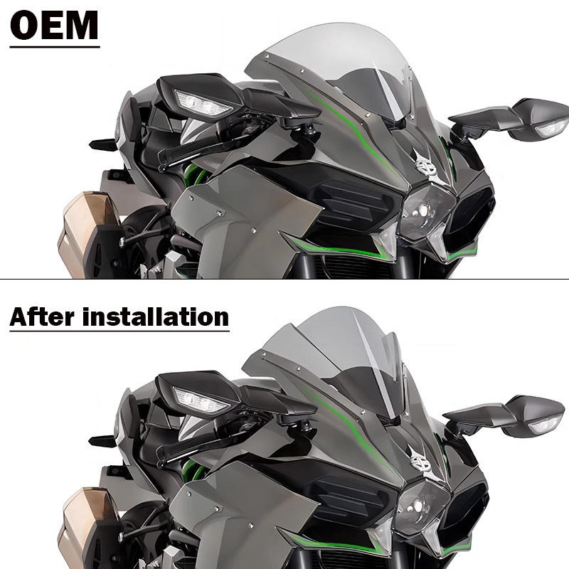 Pour le nouveau déflecteur de pare-brise de piste compétitive modifié Kawasaki H2/H2R avec lunettes de rétroviseur avant matériau PMMA épaisseur 2.5mm