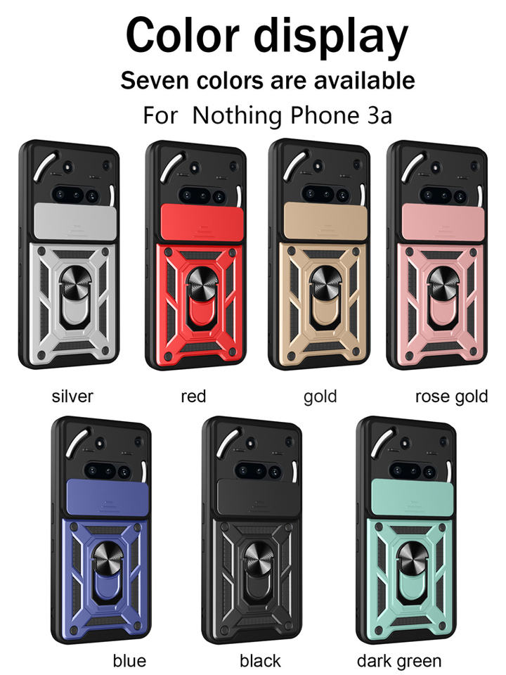 Étui magnétique pour téléphone portable avec anneau de support coulissant pour objectif, compatible Nothing Phone (3a) Pro/Nothing Phone (3a)/Nothing CMF Phone 1