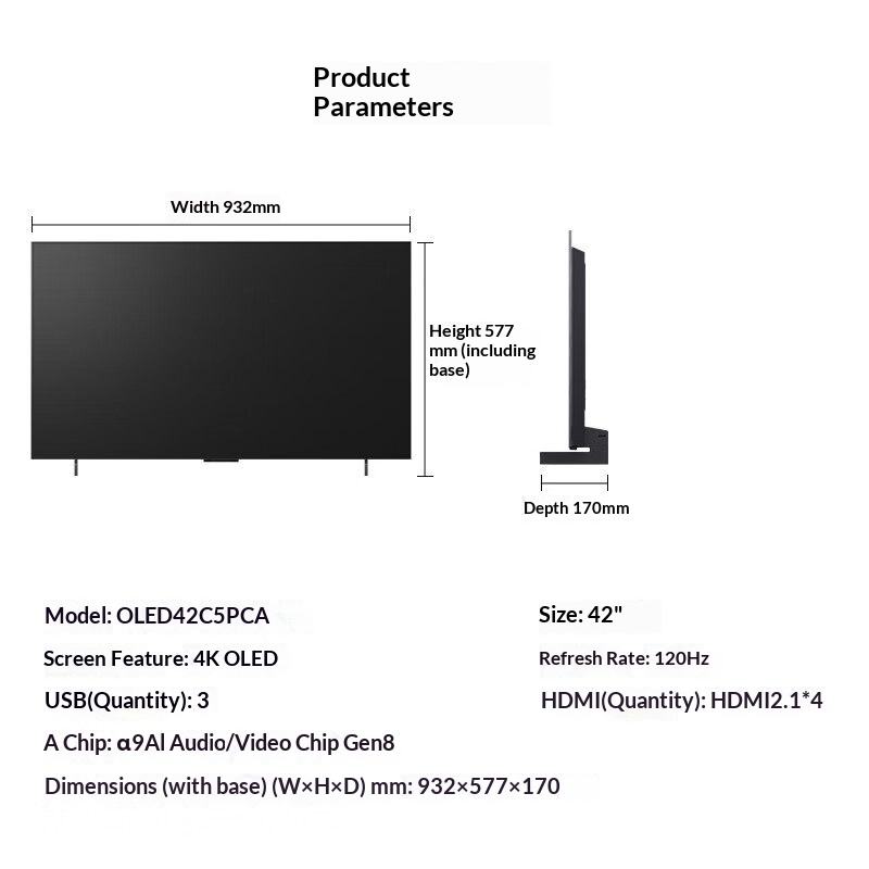 Écran OLED standard officiel de 42 pouces, modèle C5PCA avec socle intégré - Nouveau produit 2025.
