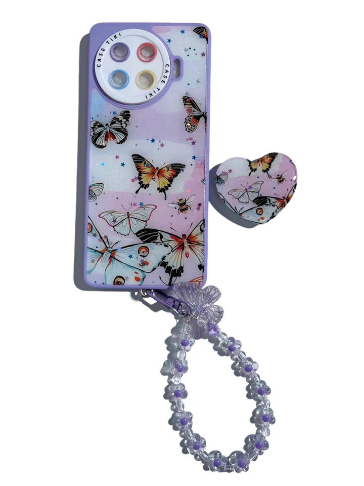Coque de téléphone portable anti-chute avec bracelet papillon pour OPPO Reno 12/11F/12Pro/F25Pro/A59/A60/A3 Pro