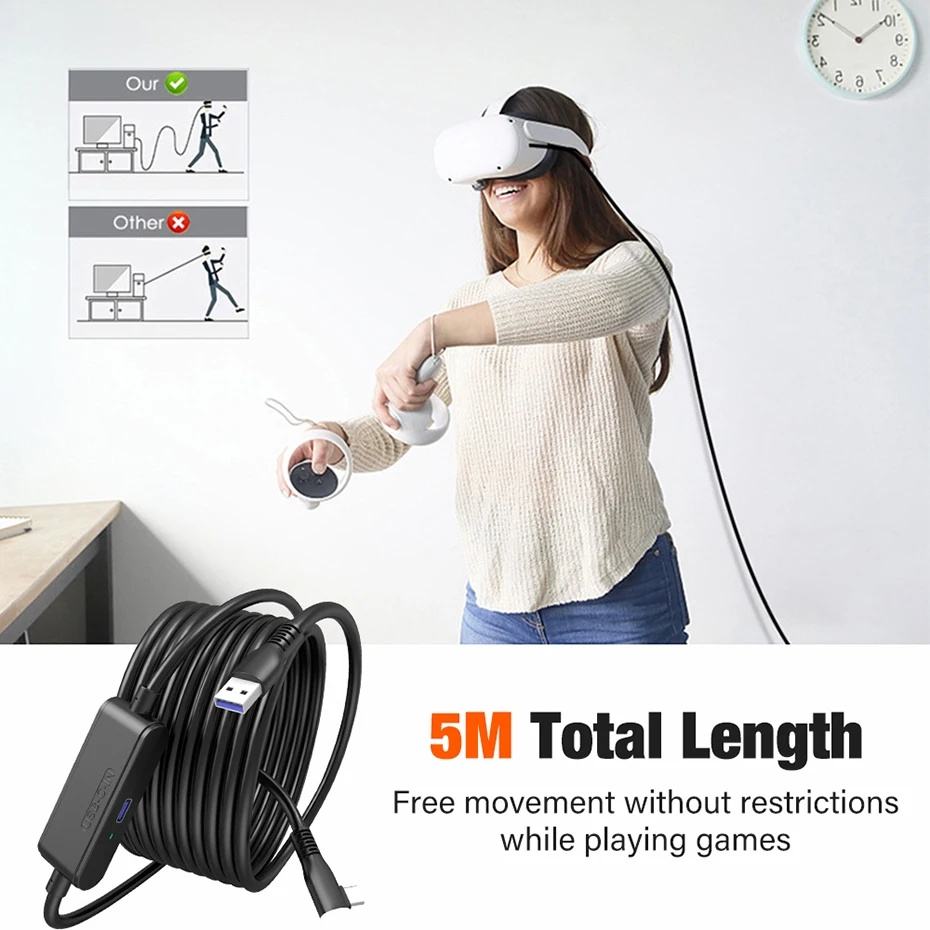 Pour Oculus Link Meta Quest 3S/3 Quest 2/Pro Pico 4 PC USB A à USB C Chargeur Cordon 16ft pour VR Casque Stream Câble Accessoires