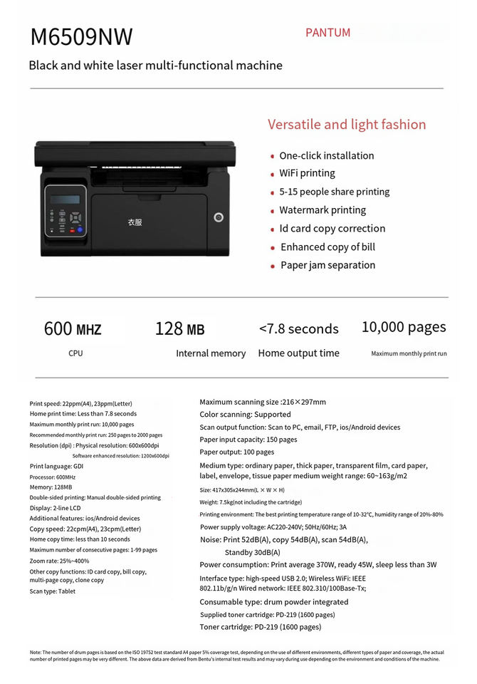 Marque Compatible:PANTUM m6509 Imprimante
