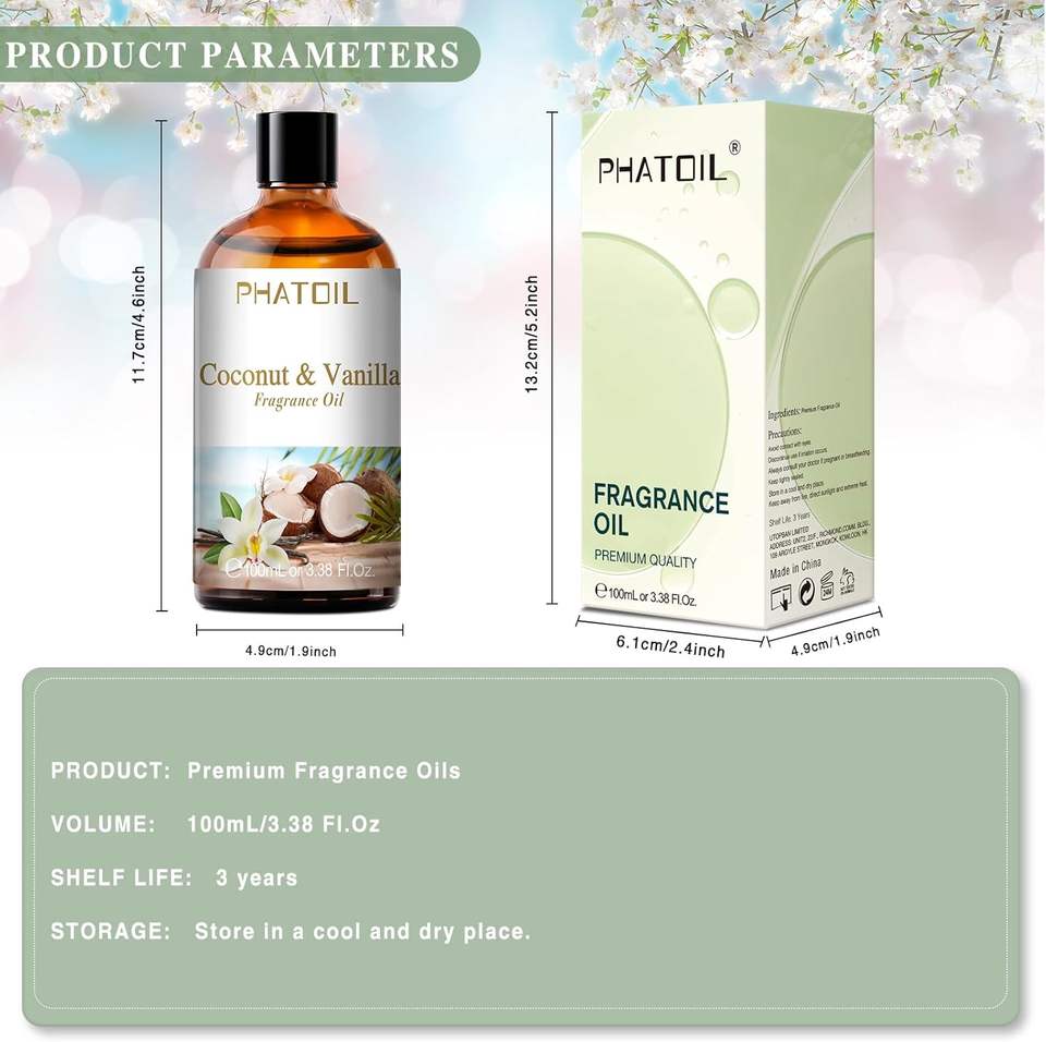 Pour PHATOIL 3.38FL.OZ huiles parfumées à la vanille de noix de coco huiles essentielles d'aromathérapie pour diffuseur à la maison bricolage bougie fabrication de savon 100ml