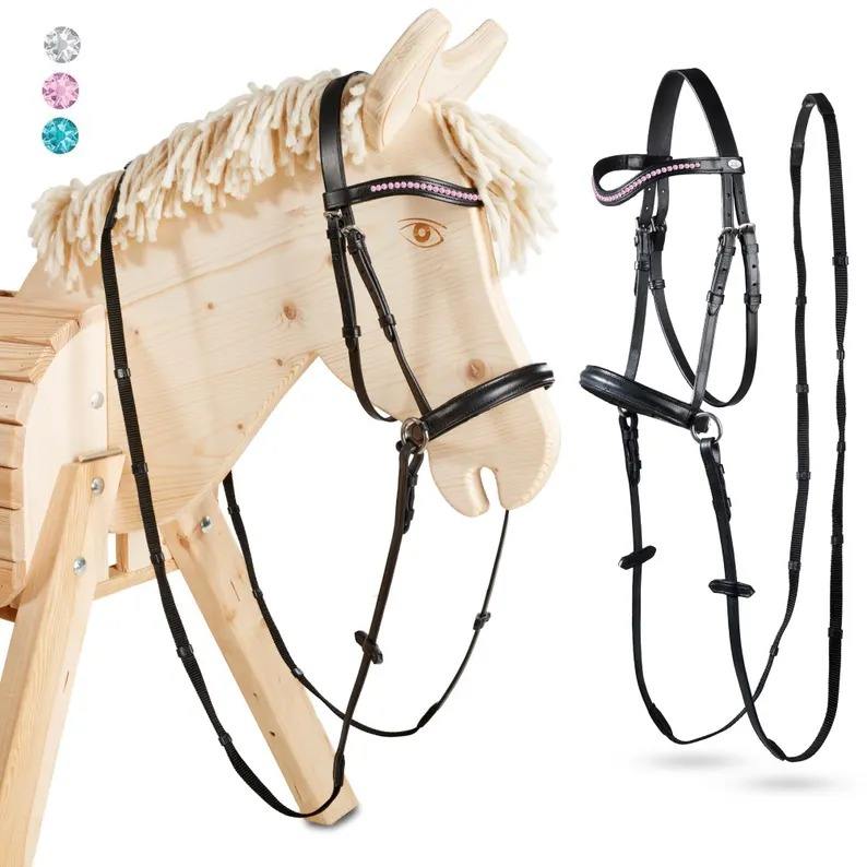 Pour PONY FUN SET Bride sans mors pour cheval Jouer Jardin Chevaux en bois avec matériau en cuir
