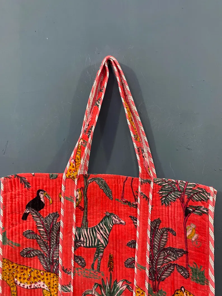 Sac fourre-tout matelassé en coton couleur unie style ethnique Peacock avec longues poignées et fermeture éclair pour l'été, l'automne, l'hiver, le quotidien, les courses et les voyages