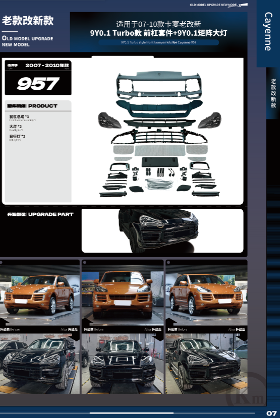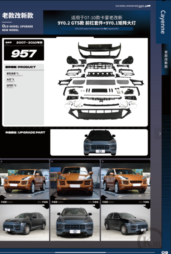 Kit de pare-chocs avant pour Porsche Cayenne 2007 2008 2009 2010 957 (modèles anciens) pour transformation en 9Y0.2 Turbo GT ou GTS SD 2025 et phares matriciels 2023