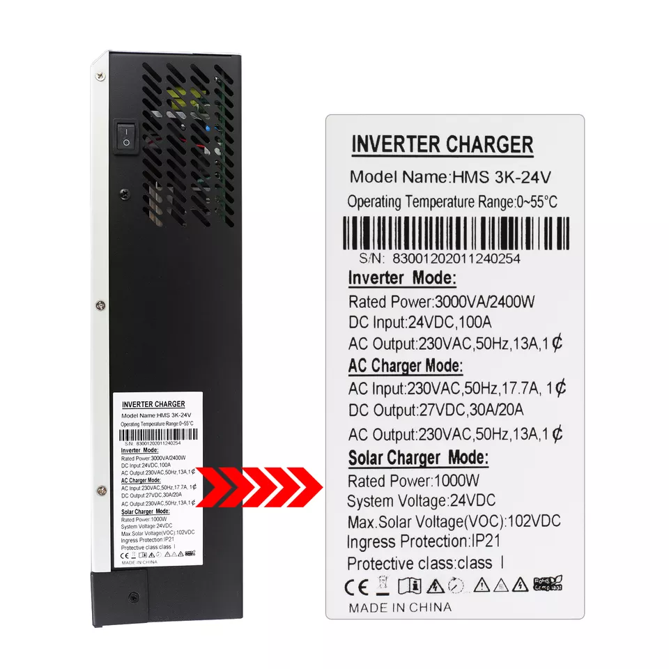 Nom du produit:Chargeur solaire hybride d'inverseur de 3KVA 220VAC 2400W