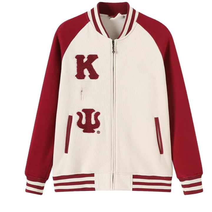 Veste Bomber d'Hiver en Molleton Chenille avec Lettres Personnalisées pour Fraternité Grecque, Col Montant – Collection Psi Krimson