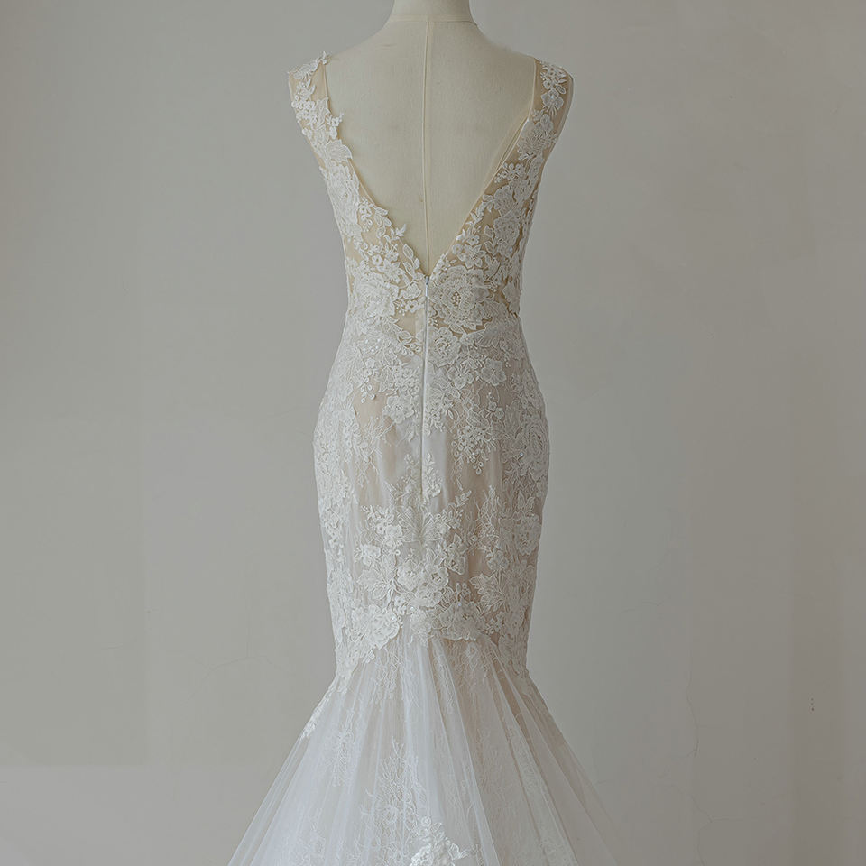 Robe de mariée de luxe moderne style sirène avec dos illusion, décolleté cœur, traîne chapelle, matériaux personnalisables pour la mariée et la mère de la mariée