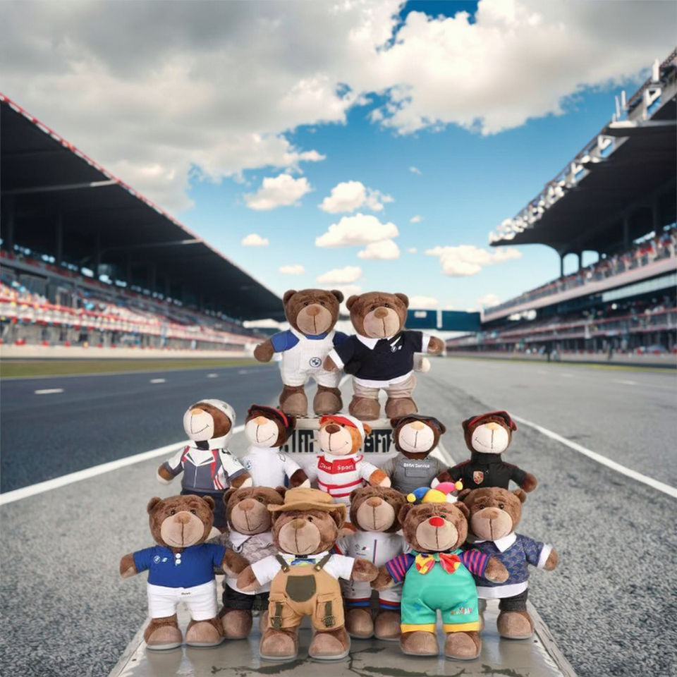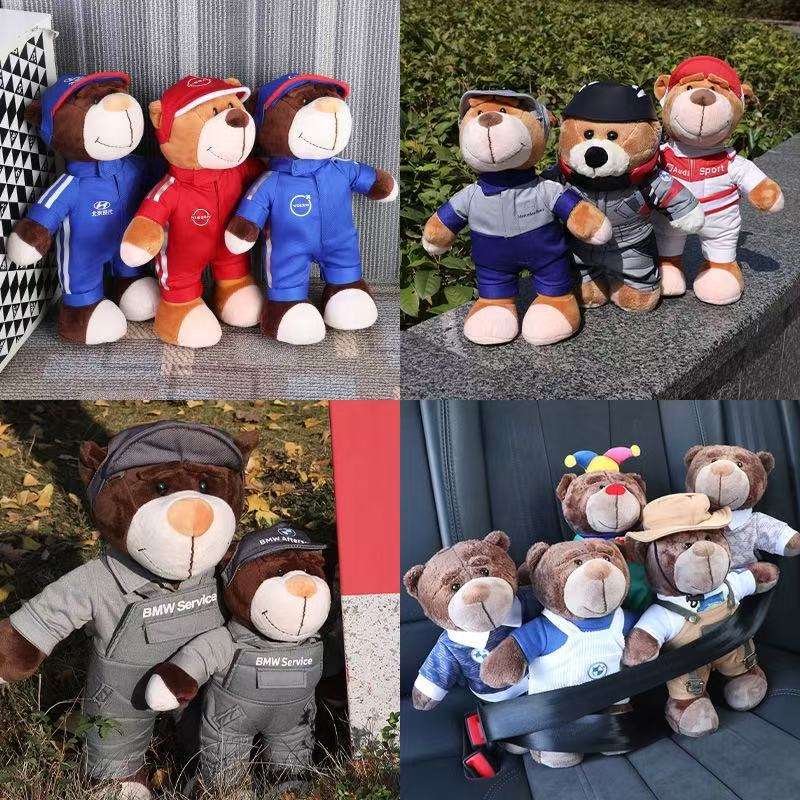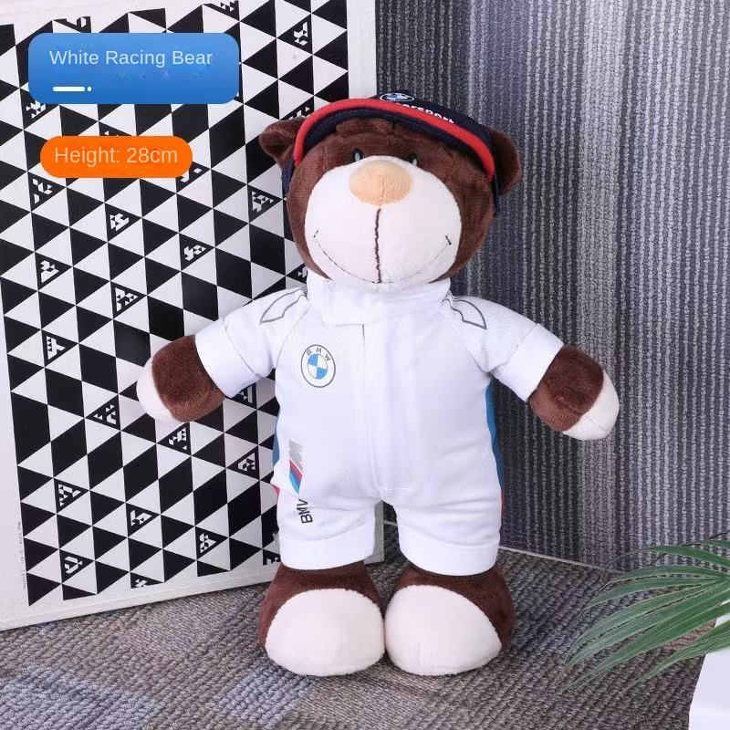 For Racing Bear Motorcycle Plush Toy with PP Cotton Filling Rally Bear Decorations- Car Brand Themed Racing Stuffed Dolls