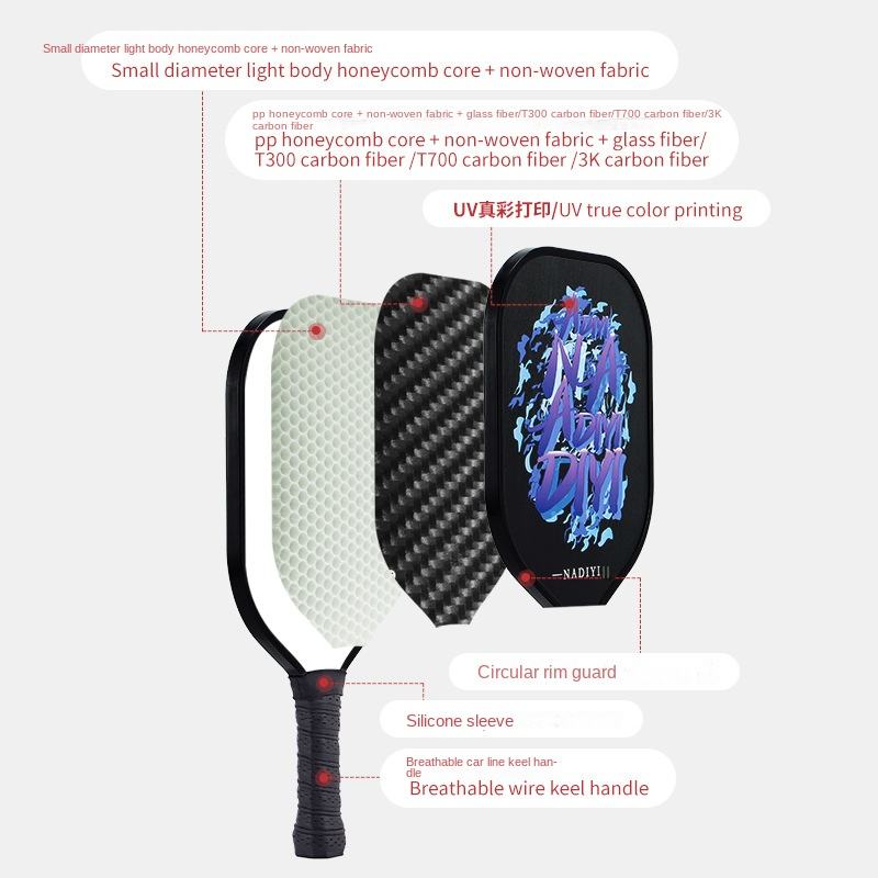 Raquette de pickleball ultra légère en carbone, professionnelle, durable, pour hommes et femmes, panneau en fibre de verre nid d'abeille, fabriquée en Chine, modèle 123