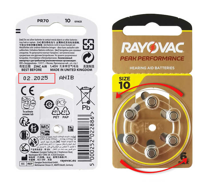 Piles auditives primaires au lithium Rayovac pour Peak, toutes tailles 10, 13, 312, 675, zinc-air pour produits auditifs et auditifs