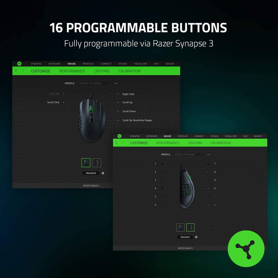 Pour souris de jeu filaire Razer Naga X MMO, capteur optique 18 000 DPI - Interrupteur optique Razer de 2e génération - Éclairage RVB - 16 boutons