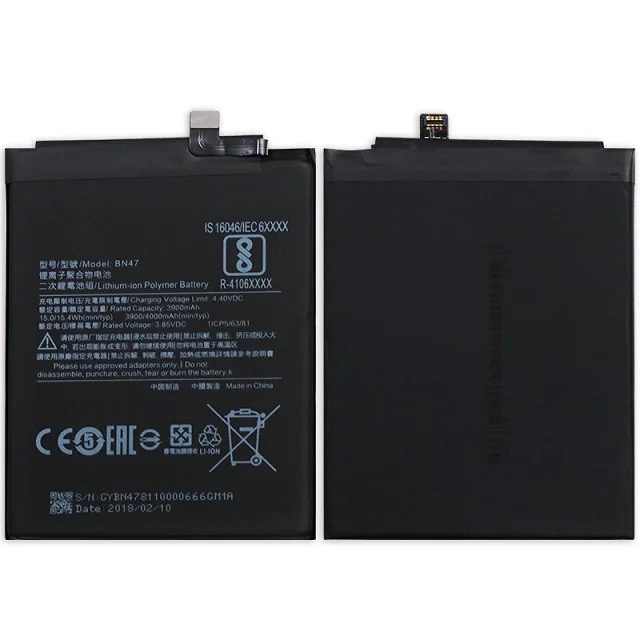 Batterie pour téléphone portable Redmi6 Pro Mi A2 Lite 3.85V 4000mAh BN47 Double protection IC Garantie 12 mois En stock