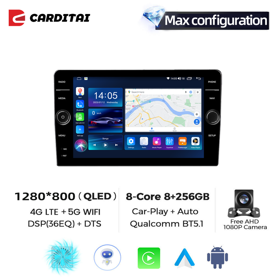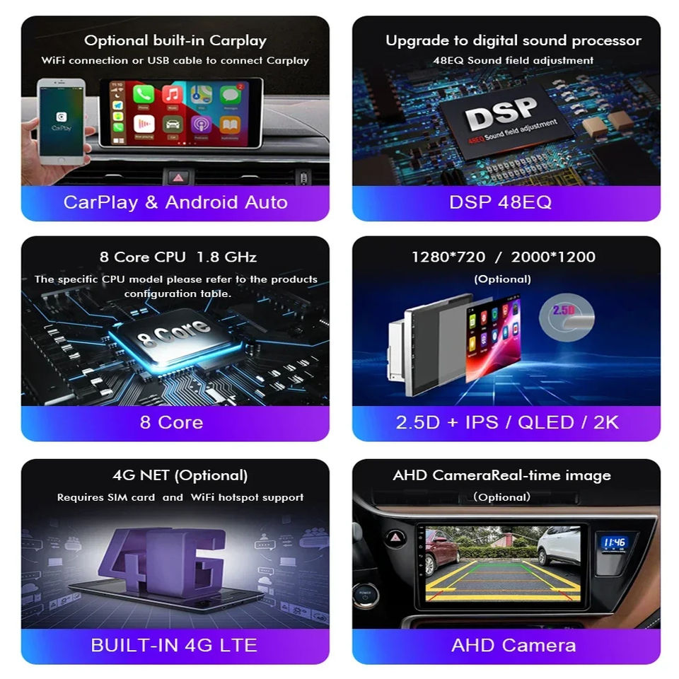 GPS, Stéréo, RVB, Amplificateur, CarPlay, Lien de miroir, Android auto, Image dans l'image, Écran partagé, Hi-Res Audio, Volant de voiture de ContrôleFonction