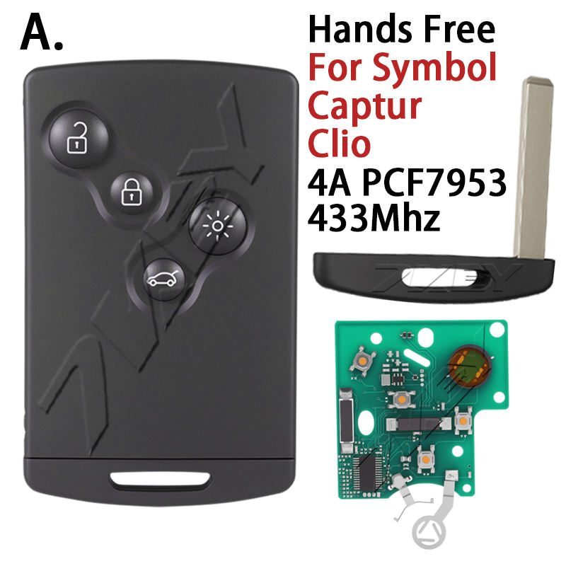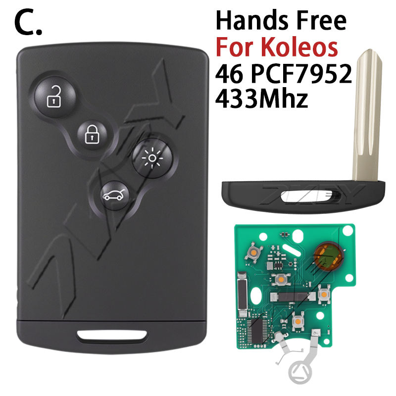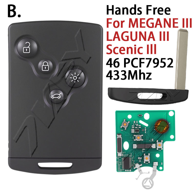 Pour Renault Megane 3 Laguna 3 Grand Scenic Koleos Fluence Clio IV Captur ID46 4A Chip Clé Intelligente Mains Libres Sans Clé Télécommande de Voiture