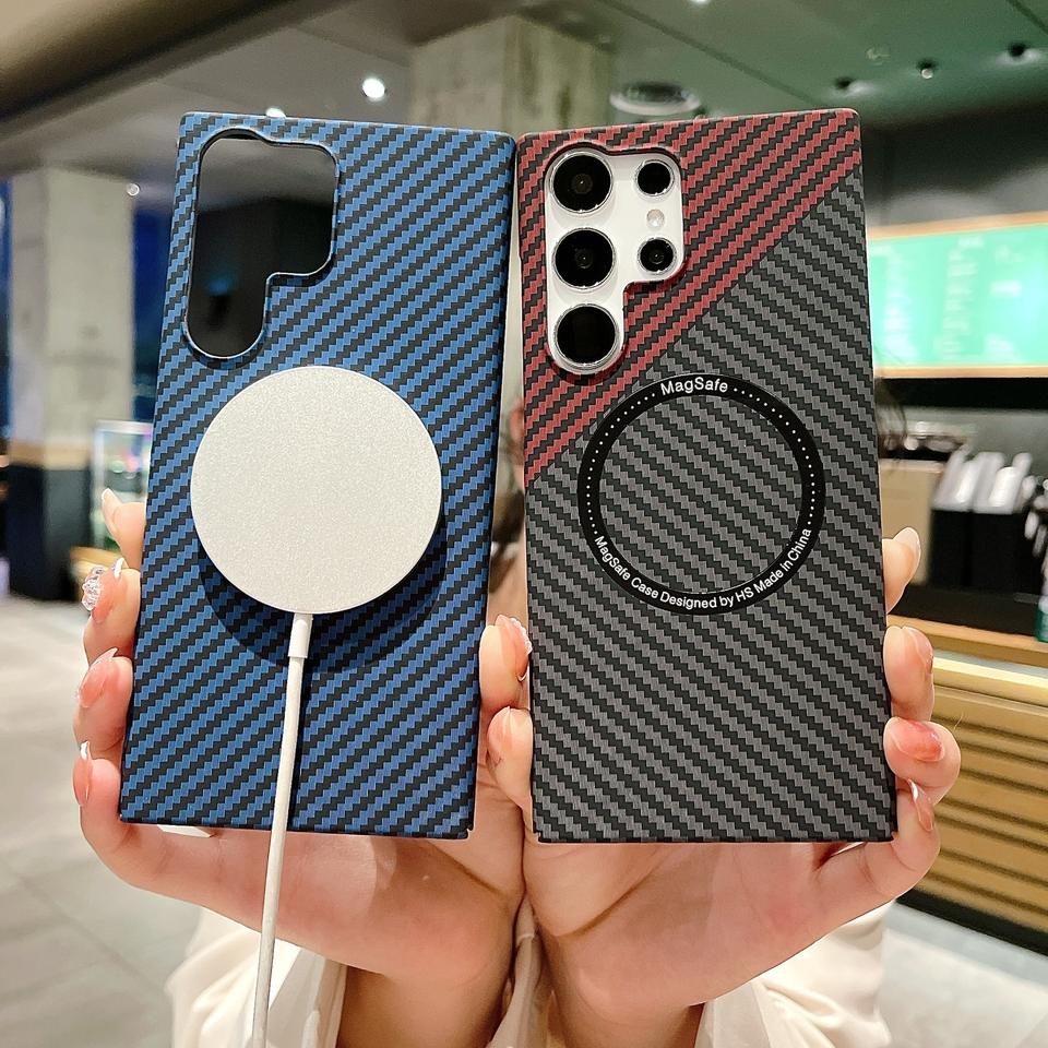 Pour coque de téléphone S24Ultra S23plus fibre de carbone magnétique PC housse de protection ultra-mince 22