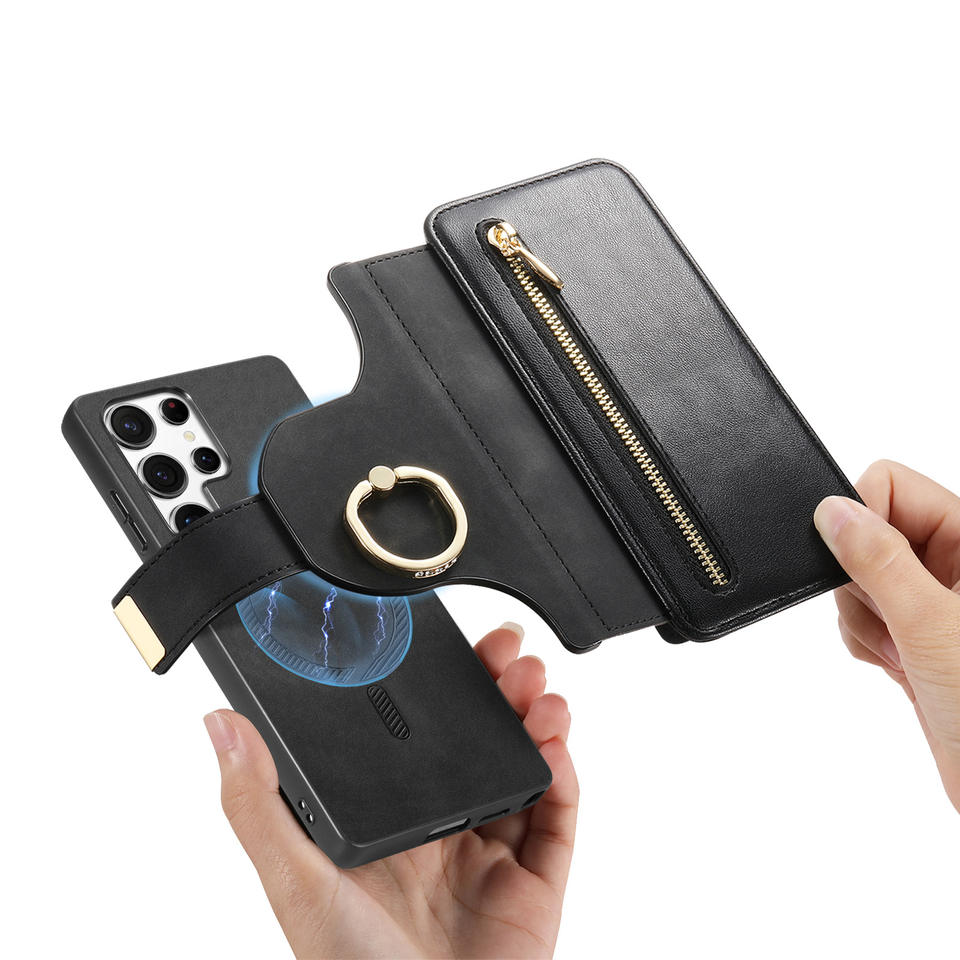 For S25 Phone Case Magnetic Detachable 2-in-1 Credit Card Holder Leather Protective Cover Clip Closure Compatible for