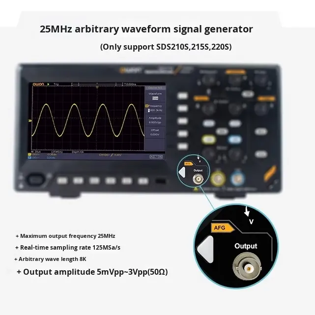 Oscilloscope numérique Owon SDS210 à 2 canaux, plage 100 MHz-200 MHz, 1 GS/s FFT, générateur de signaux 25 MHz 8 bits