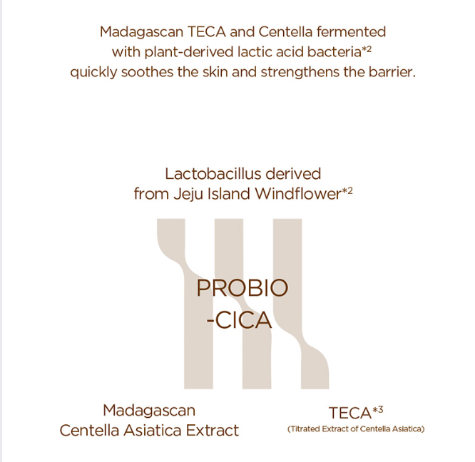 ingredient:Lactobacillus/, Centella Asiatica Extract Ferment Filtrate,, Centella Asiatica Extract, Ceramide NP,, TECA, Polyhydroxystearic Acid,, Betaine, Allantoin, Panthenol