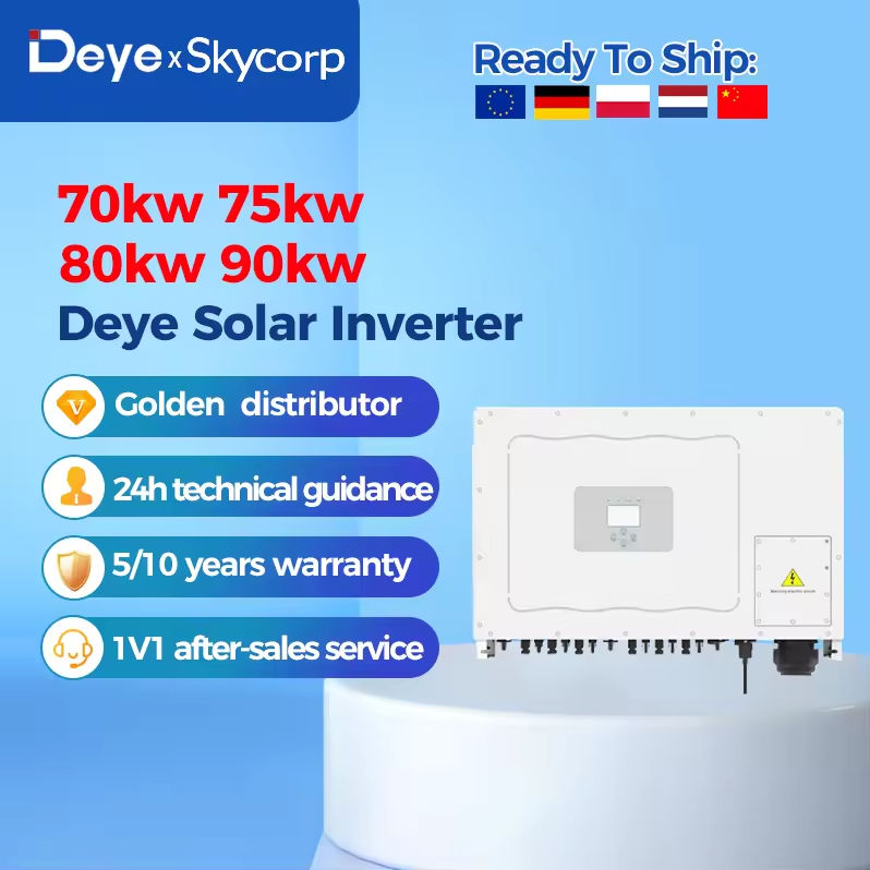 Onduleur solaire triphasé connecté au réseau SUN-70/75/80/90K-G03 70-90kW avec une efficacité de 98,7 % pour les systèmes solaires