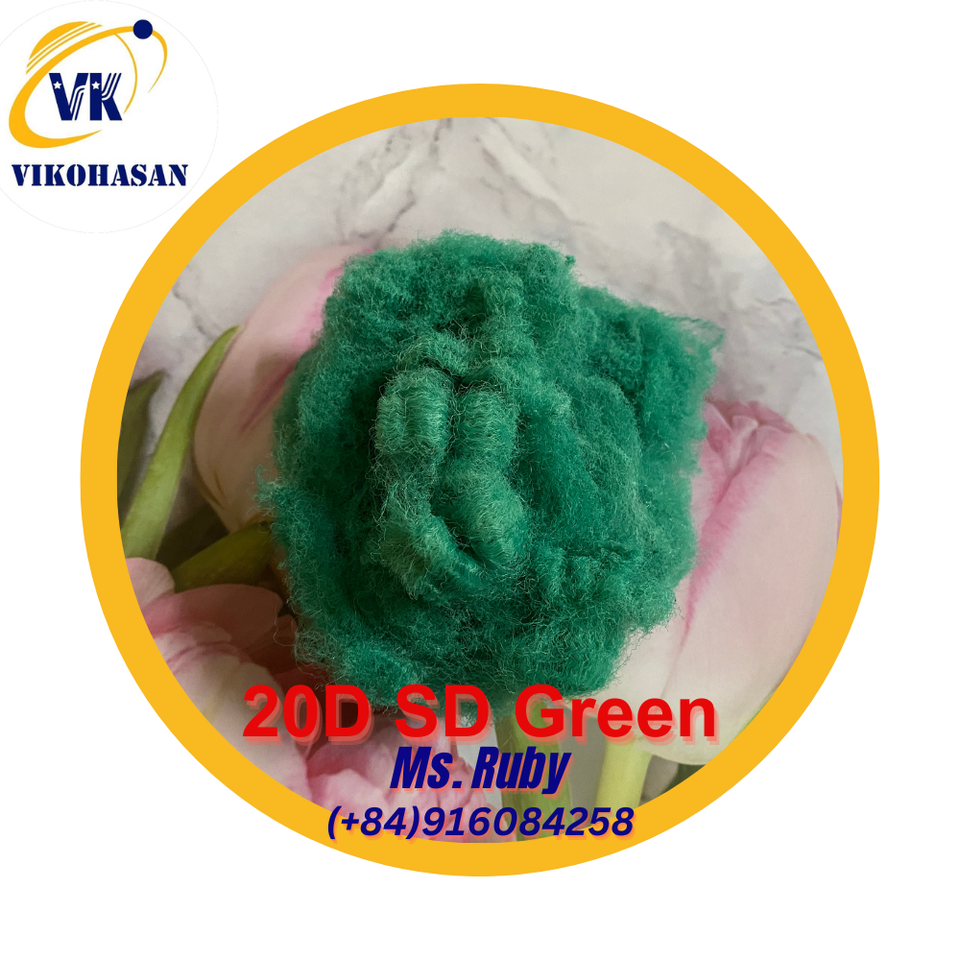 Fibre recyclée solide verte SD 20D Grade A du fournisseur Vikohasan et fibre GRS pour la fabrication de ouate de tapis de matelas