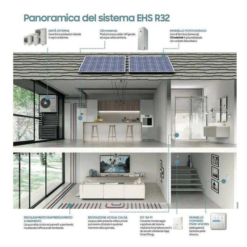 Pour système de climatisation domestique Samsung EHS Mono R32, pompe à chaleur 14-16 kW avec Climate Hub ACS 260 Lt monophasé