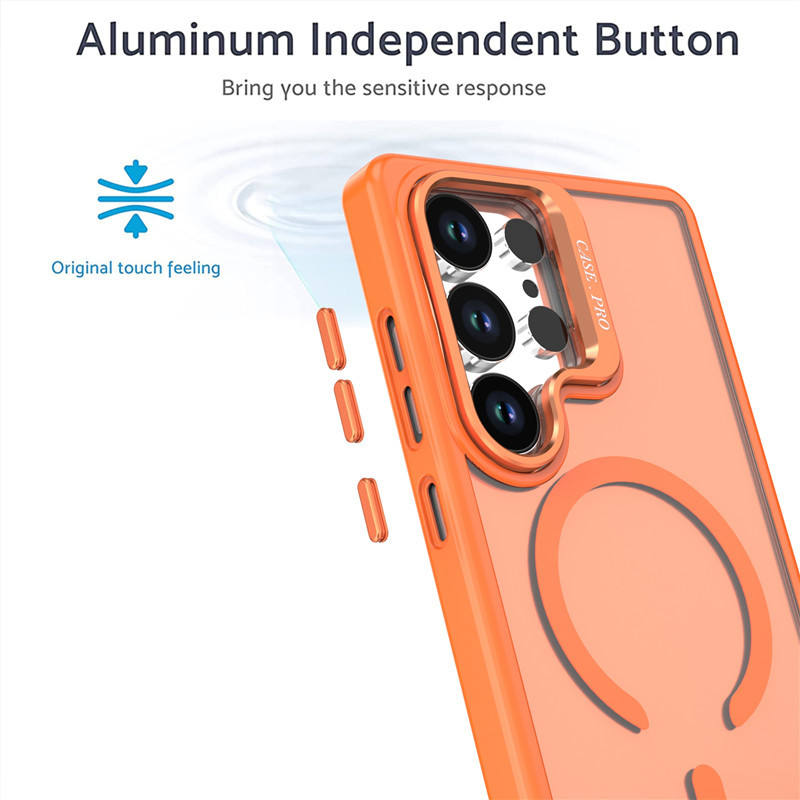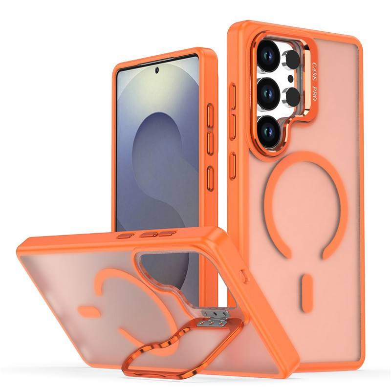 Étui de protection magnétique anti-chute pour Samsung Galaxy S25 Edge avec support d'objectif givré pour Samsung S26 Ultra