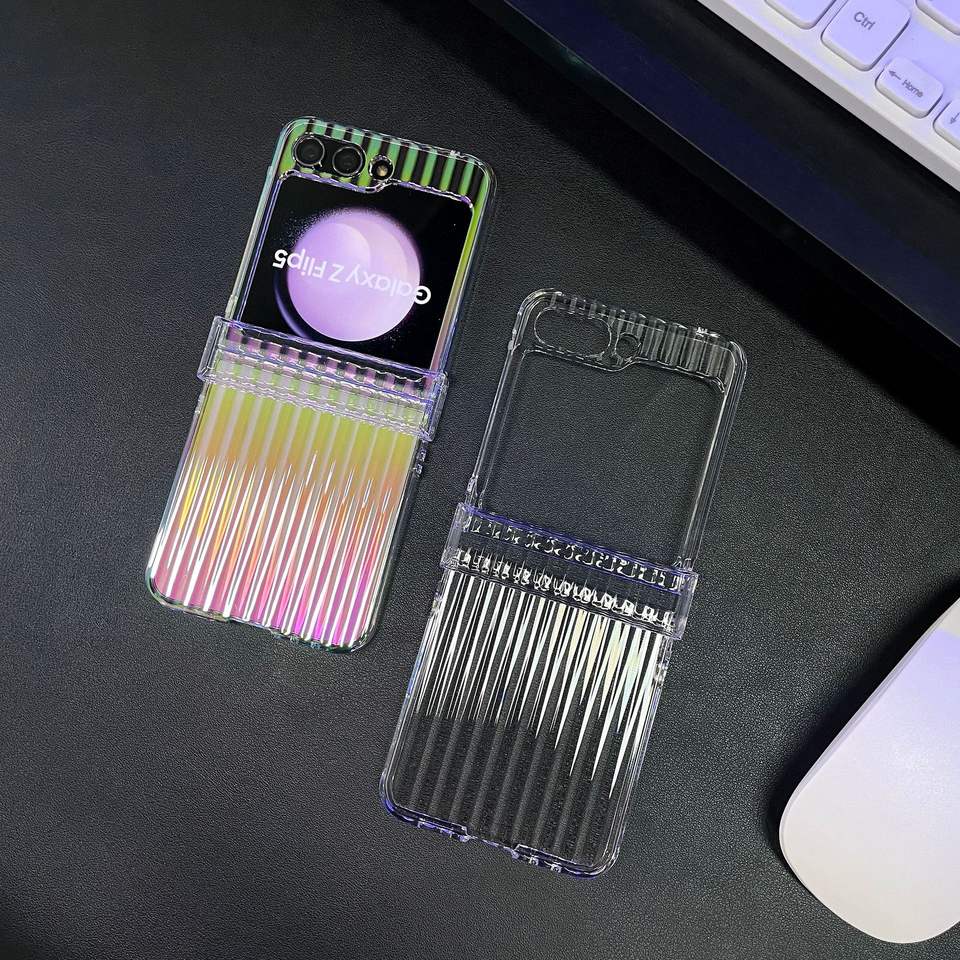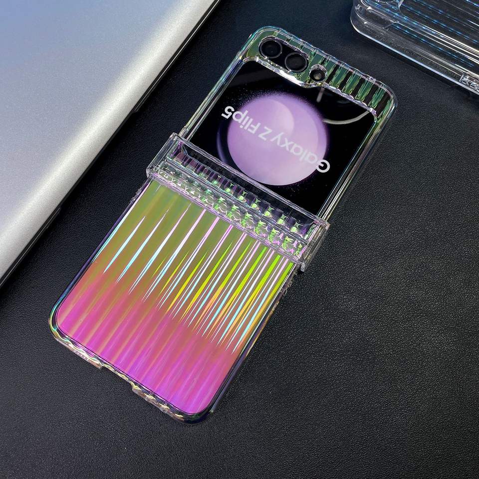 Pour Samsung Z Flip 5 4 3 étui de téléphone portable haute transparence couleur éblouissante axe central pli coque arrière pour Galaxy Z Flip 6