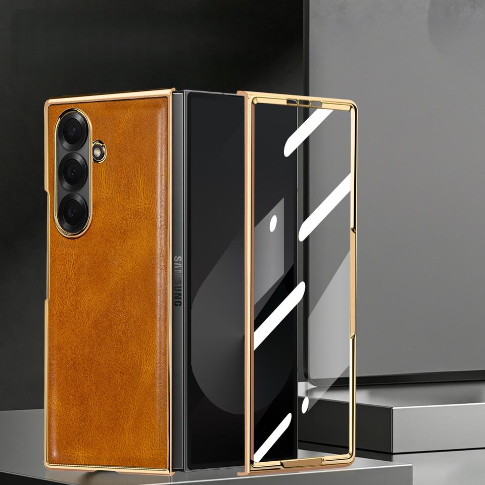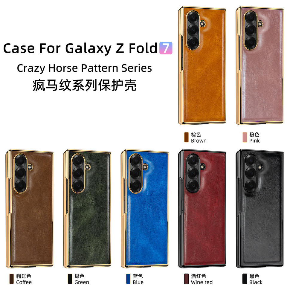 Étui pour téléphone Samsung Z Fold 7, motif Crazy Horse électroplaqué, avec film intégré, compatible avec Samsung Z Fold 6 5 4 3 2