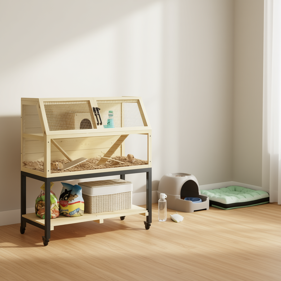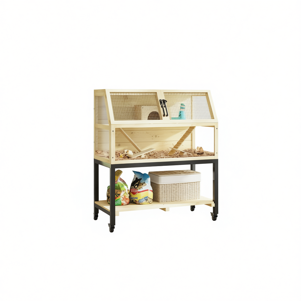 Cage à hamster en bois avec support, cadre en bois durable, style rectangulaire simple, pour les propriétaires d'animaux de compagnie, petite taille, toutes saisons