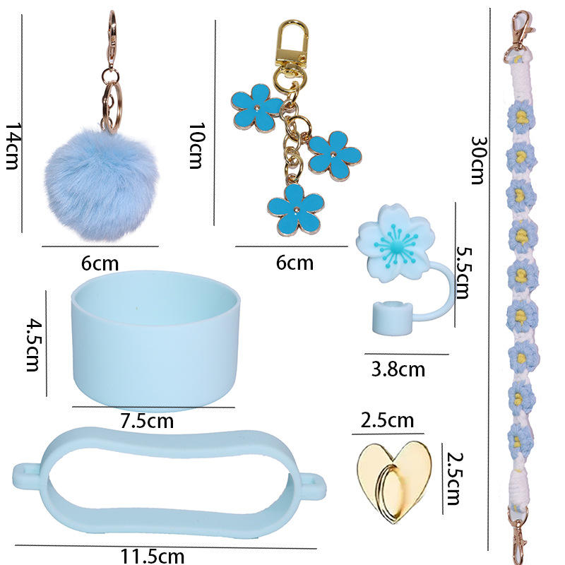Pour accessoires de barre jetables en Silicone ensemble d'accessoires de bouteille d'eau chaîne de fleur bouchon de paille Pom-Pom chaîne de perles petite fleur