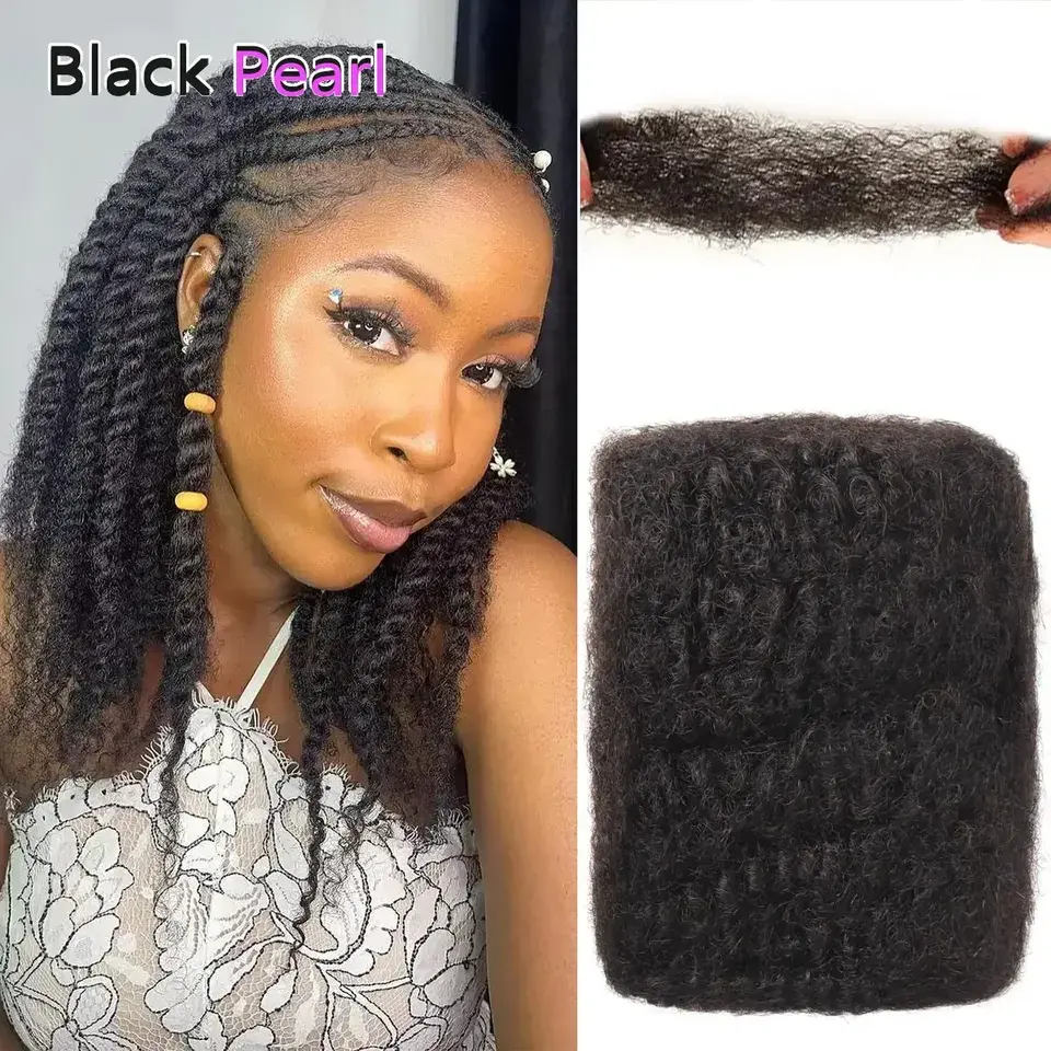 Extensions de cheveux humains 100 % Remy brésiliens afro crépus en vrac, noirs naturels, pour tressage