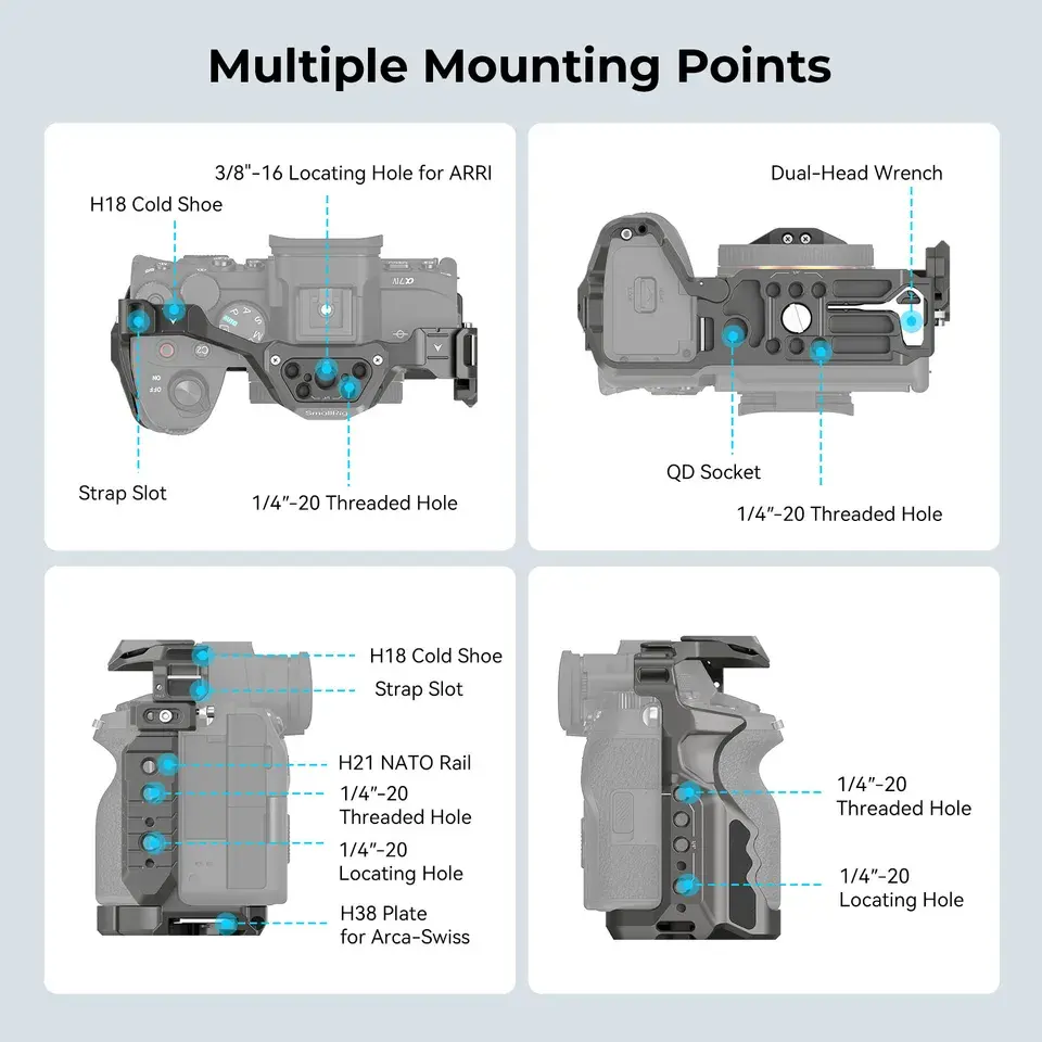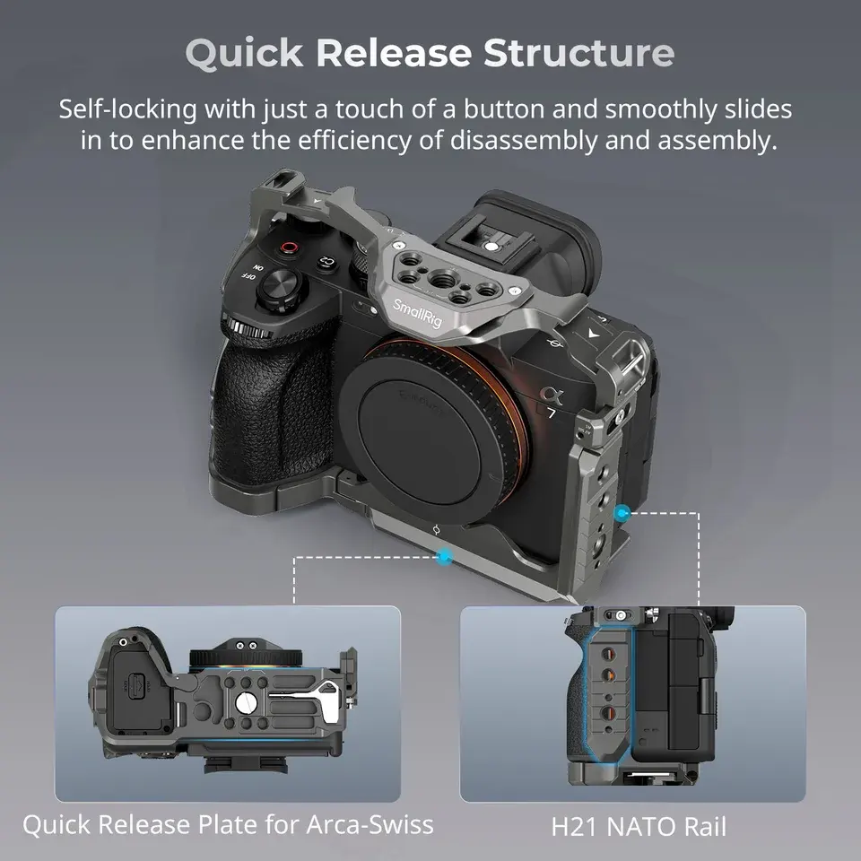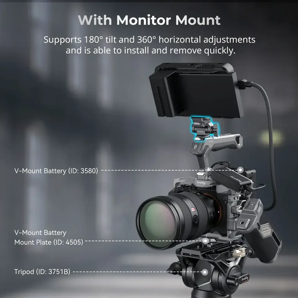 Kit Cage pour Moniteur avec Poignée et Pince de Câble SmallRig 4539 Advanced HawkLock à Dégagement Rapide pour Sony Alpha 7R V/A7 IV/A7S III
