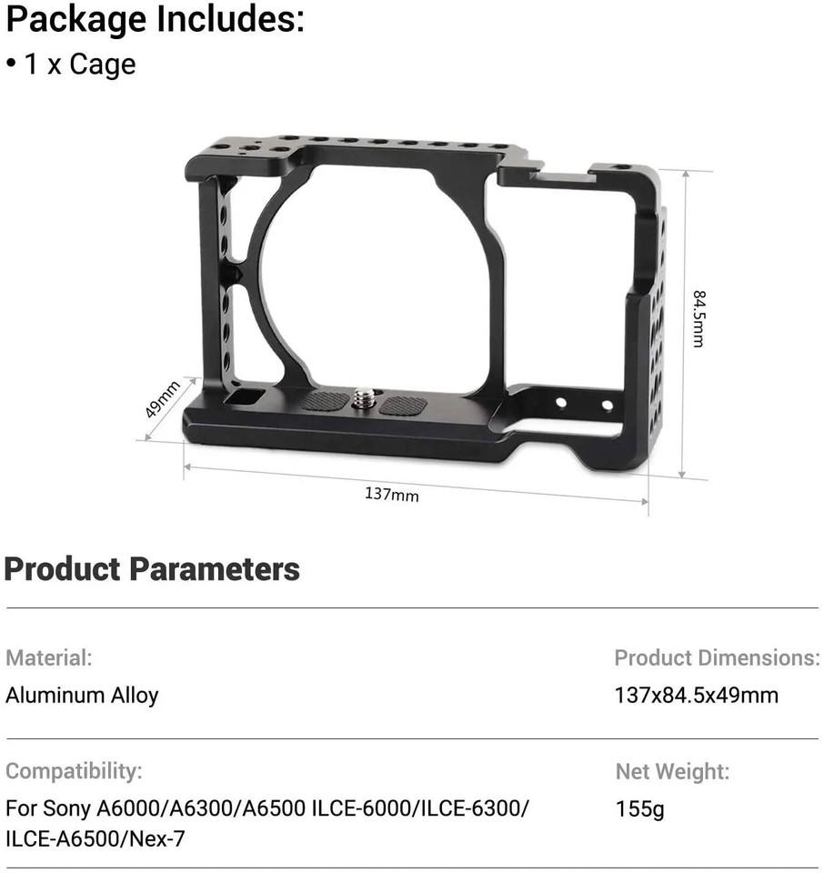 Pour SmallRig alliage d'aluminium caméra Cage Rig pour Sony A6500 Compatible avec A6300/A6000/Nex-7 1661 trous de filetage de montage de chaussure