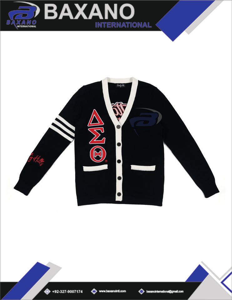 Pull cardigan d'hiver Delta Sigma Theta Sorority avec imprimé frontal, polyester/coton, col en V, logo frontal, style vintage DST