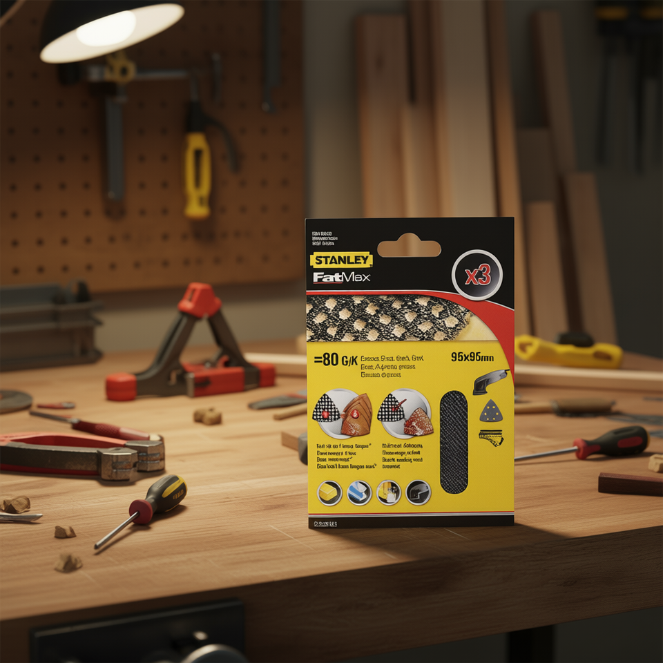 Feuilles de ponçage triangulaires multi-paquet Stanley pour ponceuses à velcro, outils abrasifs