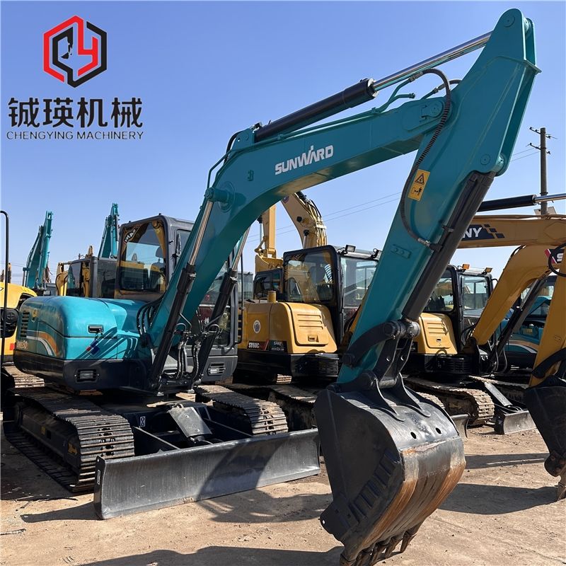 Excavatrice d'occasion Sunward 80E de 8 tonnes avec peu d'heures de fonctionnement, moteur et pompe d'origine 100% provenant du chantier de Shanghai, Chine