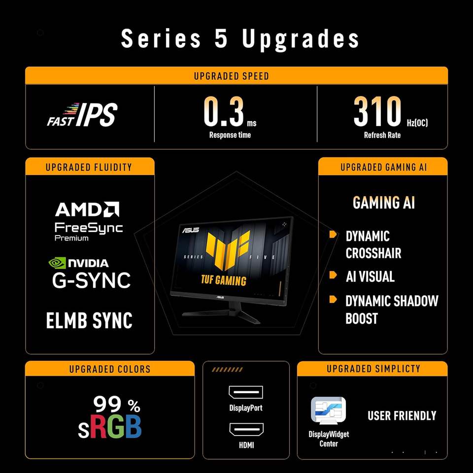 Pour moniteur de jeu TUF 25 pouces 1080P Fast IPS 310Hz 0,3 ms compatible G-Sync mat 16:9