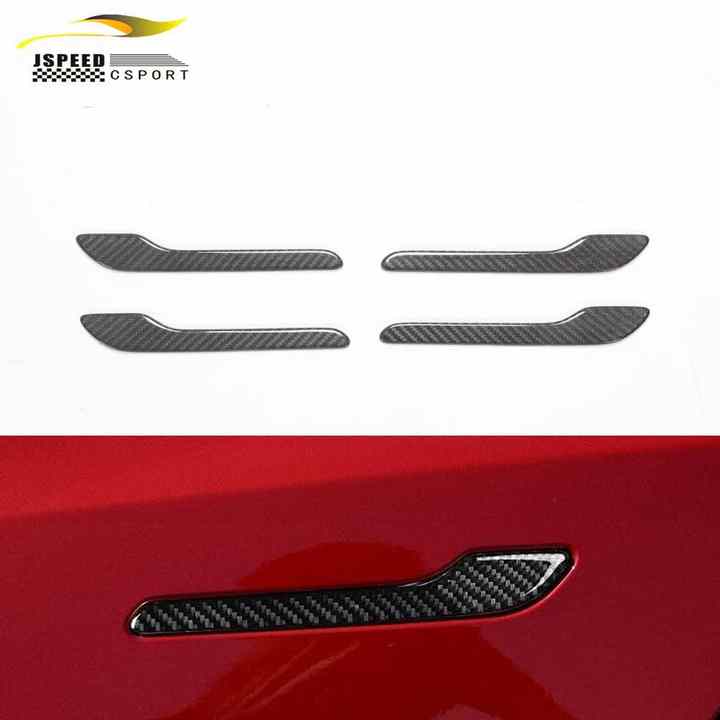 Pour Tesla modèle 3 4 pièces/ensemble en Fiber de carbone poignée de porte de voiture couverture garniture décoration protecteur