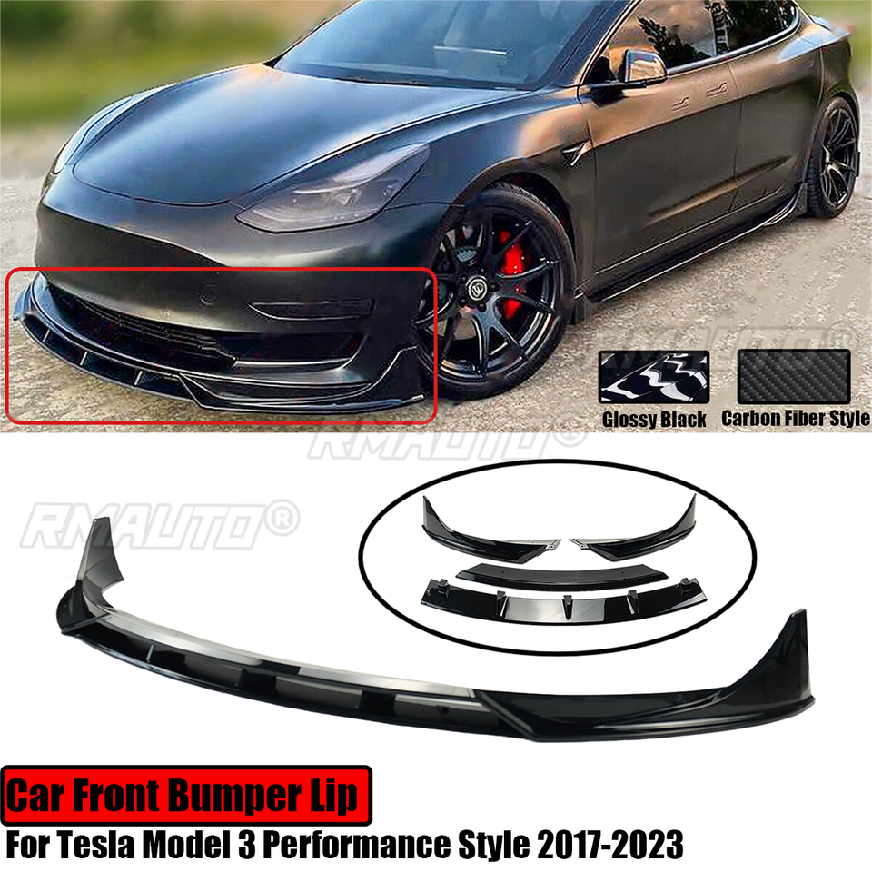 Pour Tesla Model 3 Performance Style 2017-2023, Spoiler de pare-chocs avant, Splitter, Kits carrosserie aérodynamiques rapides, Style fibre de carbone, 4 pièces