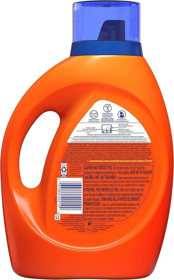 Pour Tide Liquid Haute Efficacité (HE) Détergent à Lessive Parfum Original 64 Charges Lot de 2