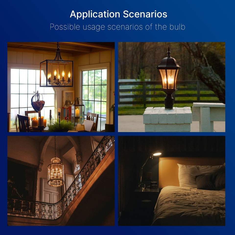 Ampoules LED pour lustre, équivalentes à 40W, à intensité variable, ambre, base B11 E26, 2200K, blanc chaud, 330LM, paquet de 6