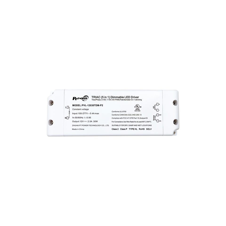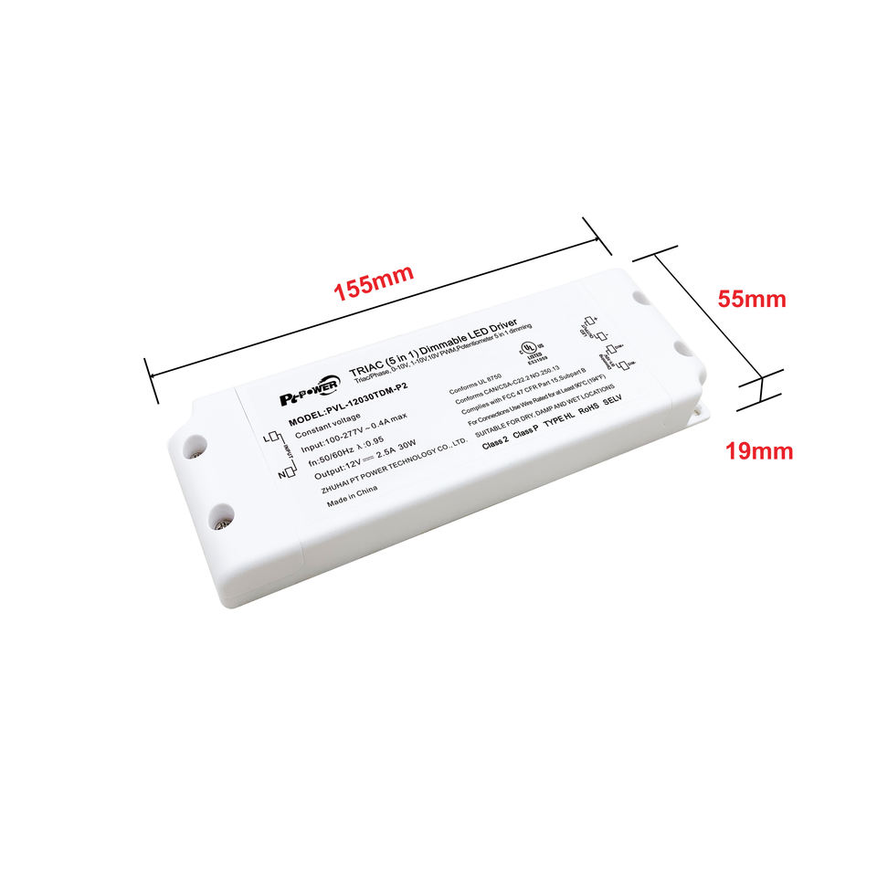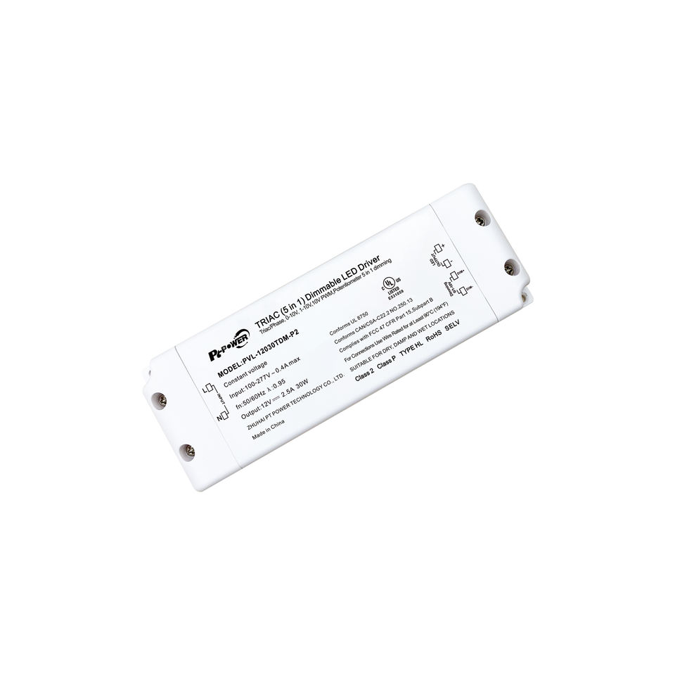 Convertisseur LED dimmable 30W homologué UL/CUL, IP20, Triac 0-10V, gradation 5-1, alimentation 12V 24V 48V pour éclairage LED commercial, hôtel, centre commercial