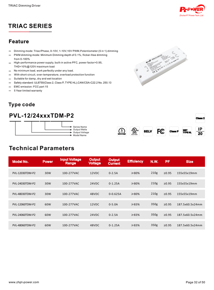 Certification:UL/CUL/FCC/Classe P/TYPE HL/Classe 2/RoHS