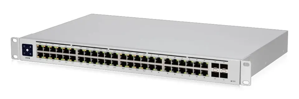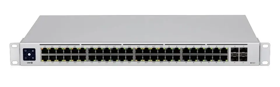 Commutateur UniFi USW-48-POE-EU 48 ports RJ45 10/100/1000 Mbps, 32 ports PoE+, 4 ports SFP, capacité 104 Gbps, prise en charge des VLAN